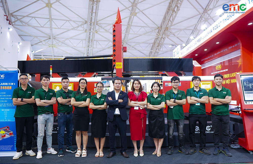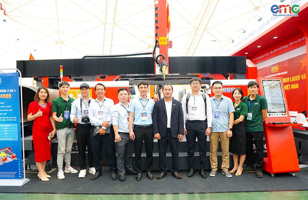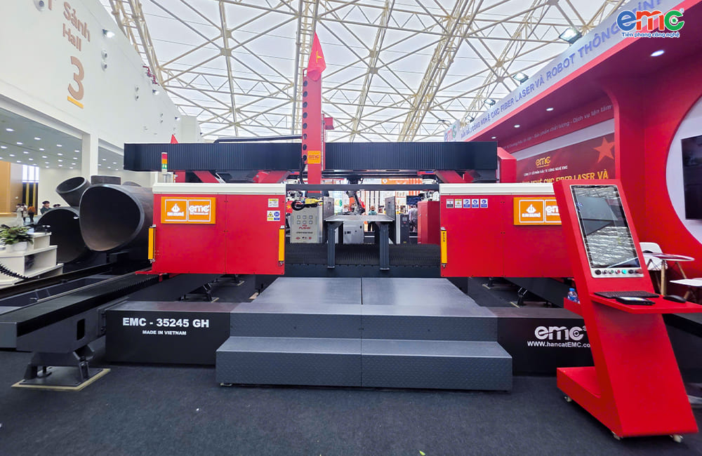 Nổi bật tại triển lãm lần này là thương hiệu EMC, doanh nghiệp Việt tiên phong trong lĩnh vực chế tạo máy cắt và hàn laser, với hai sản phẩm chủ lực: Máy cắt laser 5 trong 1 và Cổng hàn laser 9 trục. Đây chính là những điểm nhấn thu hút sự chú ý của giới chuyên môn và khách tham quan.