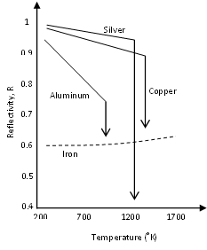- Đồng nguyên chất phản xạ> 95% bức xạ gần IR (bước sóng ~ 1 µm) ở trạng thái rắn.