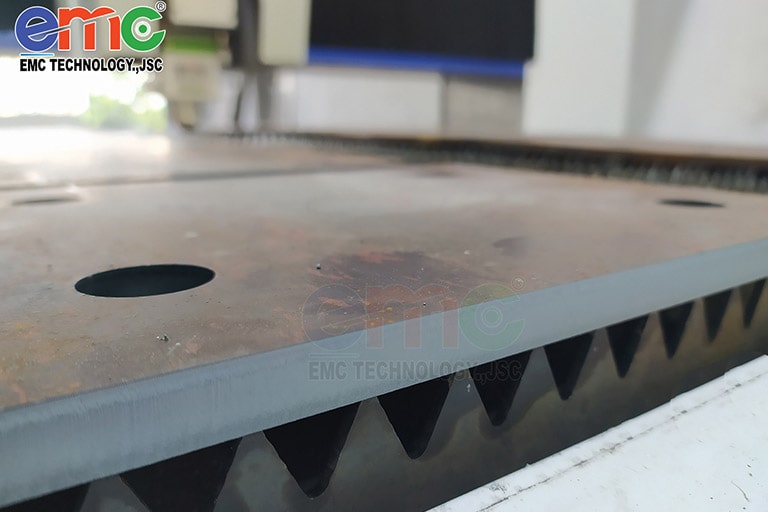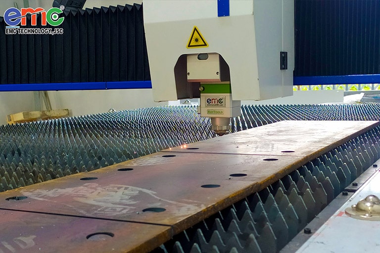 Máy cắt laser fiber EMC có bàn cắt được phay nguyên khối, kết hợp với ram ủ nhiệt giúp bàn máy được chắc chắn hơn so với các dòng máy thông thường khác. Máy cắt laser tại Nam Định sử dụng nguồn cắt IPG-1500W và đầu cắt RayTools của Thụy Sĩ, đây là nhưng linh kiện laser chất lượng cao hiện nay.