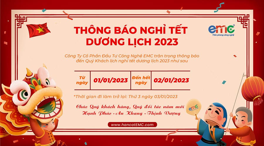 Để thuận tiện cho công việc, Công Ty Cổ Phần Đầu Tư Công Nghệ EMC Thông Báo Nghỉ Tết Dương Lịch 2023 như sau: